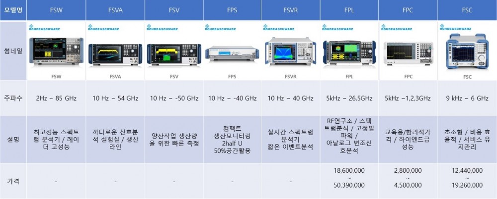 계측기 [ 로데슈바르즈 ] 스펙트럼분석기, 신호분석기 간단정리 계측기 분야의 명가 "로데슈바르즈"하면, 스펙트럼분석기가 대표적입니다. 로데슈바르즈는 독일기반의 글로벌 계측기 회사로 무선 통신, RF 테스트 및 계측, 방송 및 미디어, 항공교통관제, 군 무선통신, 사이버 보안, 네트워크 기술 등의 관련 사업 분야에서 기술과 시장을 이끄는 선도 기업입니다. 로데슈바르즈의 스펙트럼 아날라이저를 간단하게 정리했습니다. 참고로 가격은 2024년 Q1기준가격으로 옵션에 따라 변동폭이 있습니다. #로데슈바르즈스펙트럼분석기가격 날짜: 24-02-23 08:17 조회: 7473 댓글목록 댓글목록 목록 이전글3D 프린팅 SLS 재료에 대한 데이터 시트 24.02.23 다음글SLM(Service Level Management) 메탈 3D 프린팅 재료에 대한 데이터 시트 23.12.13