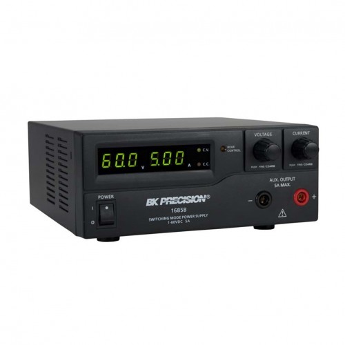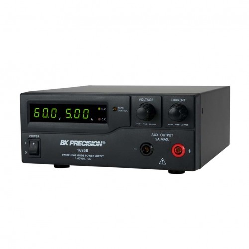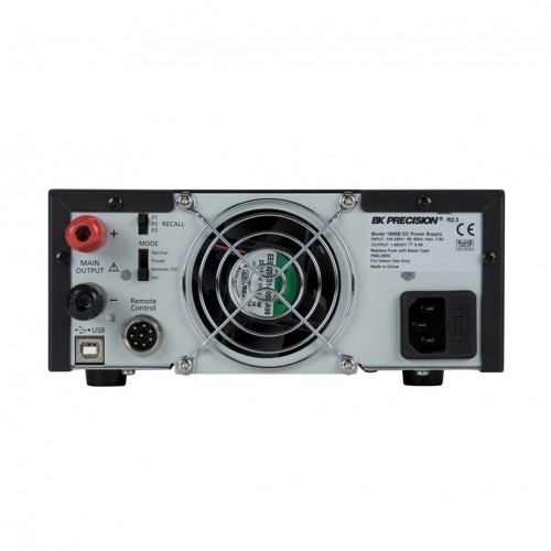 The B&K Precision 1685B, 1687B, and 1688B switching mode DC power supplies provide various configurations of high output voltage or high output current in a small, lightweight form factor. In addition to their constant voltage (CV) and constant current (CC) modes, these high efficiency DC power supplies offer unique preset and remote control modes. Up to three different presets of voltage and current values can be saved for quick recall through a rear switch. For remote control, an analog remote control terminal is accessible on the rear, or use the USB interface to communicate with the power supply via PC software or remote commands. These features make the 1685B, 1687B, and 1688B suitable for a wide range of applications including production testing, telecommunications, R&D, electronic field service, and university labs.