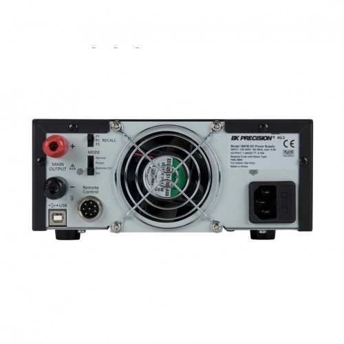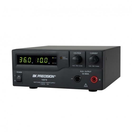 The B&K Precision 1685B, 1687B, and 1688B switching mode DC power supplies provide various configurations of high output voltage or high output current in a small, lightweight form factor. In addition to their constant voltage (CV) and constant current (CC) modes, these high efficiency DC power supplies offer unique preset and remote control modes. Up to three different presets of voltage and current values can be saved for quick recall through a rear switch. For remote control, an analog remote control terminal is accessible on the rear, or use the USB interface to communicate with the power supply via PC software or remote commands. These features make the 1685B, 1687B, and 1688B suitable for a wide range of applications including production testing, telecommunications, R&D, electronic field service, and university labs.