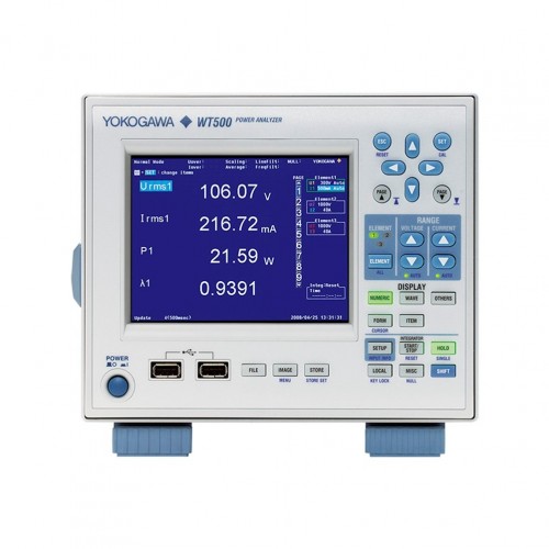 WT500 전력 분석기는 단상 및 3상 전력 측정에 탁월합니다. 표준 기능에는 컬러 TFT 디스플레이와 통신 및 메모리용 USB 인터페이스가 포함됩니다. 장비의 기본 전력 정확도는 0.1%, 최대 입력은 1000V, 40A, 측정 대역폭은 DC~100kHz입니다.
