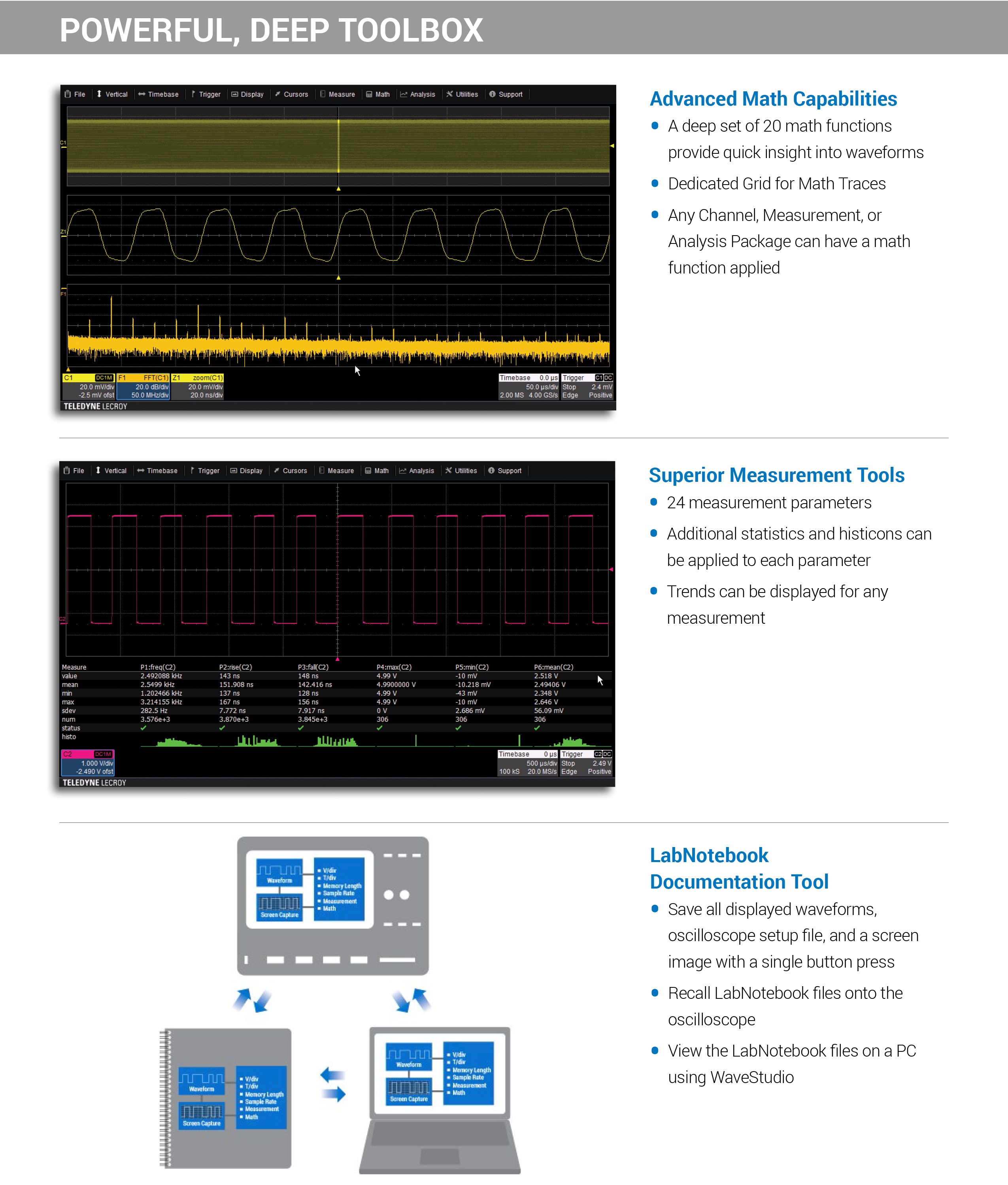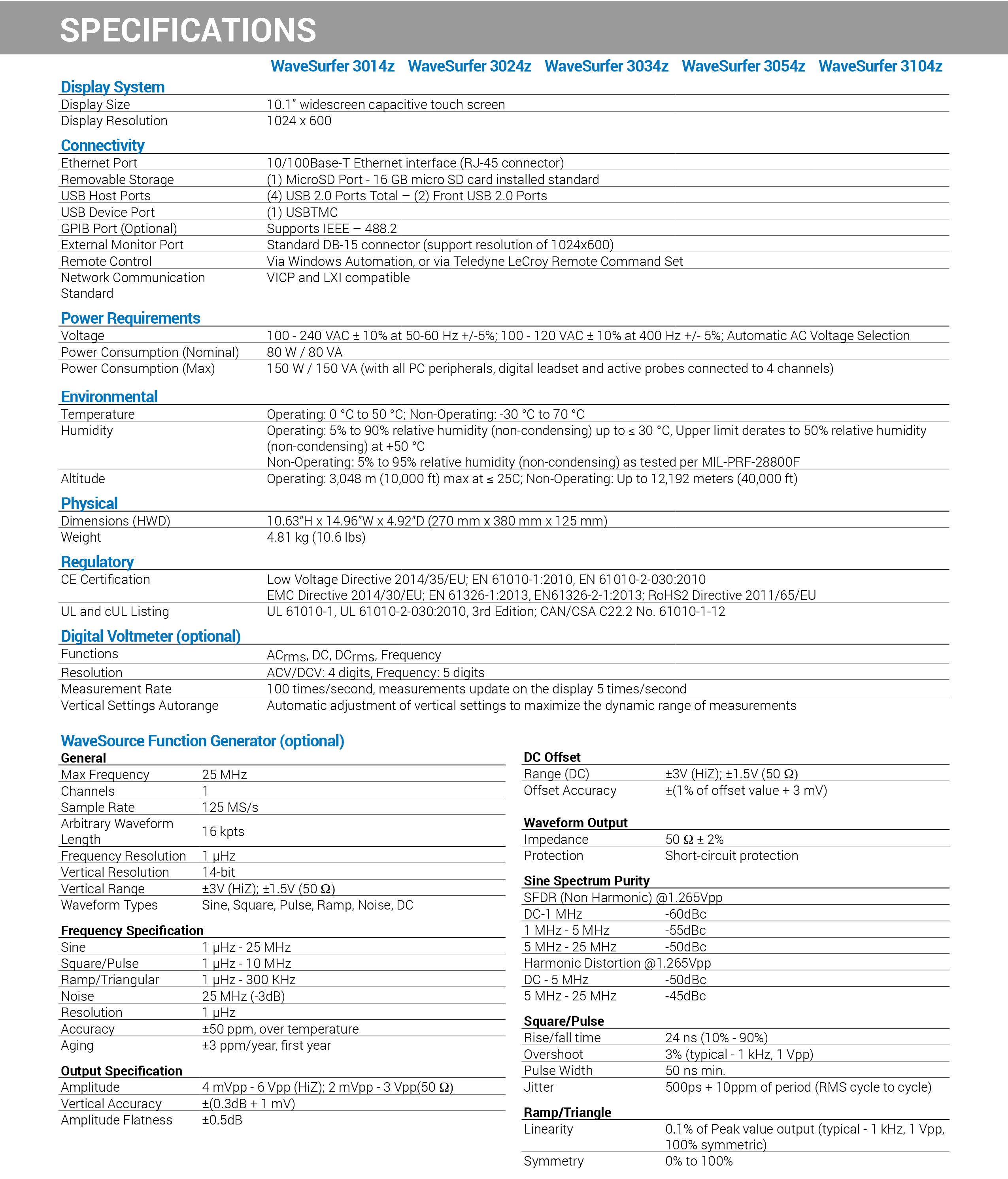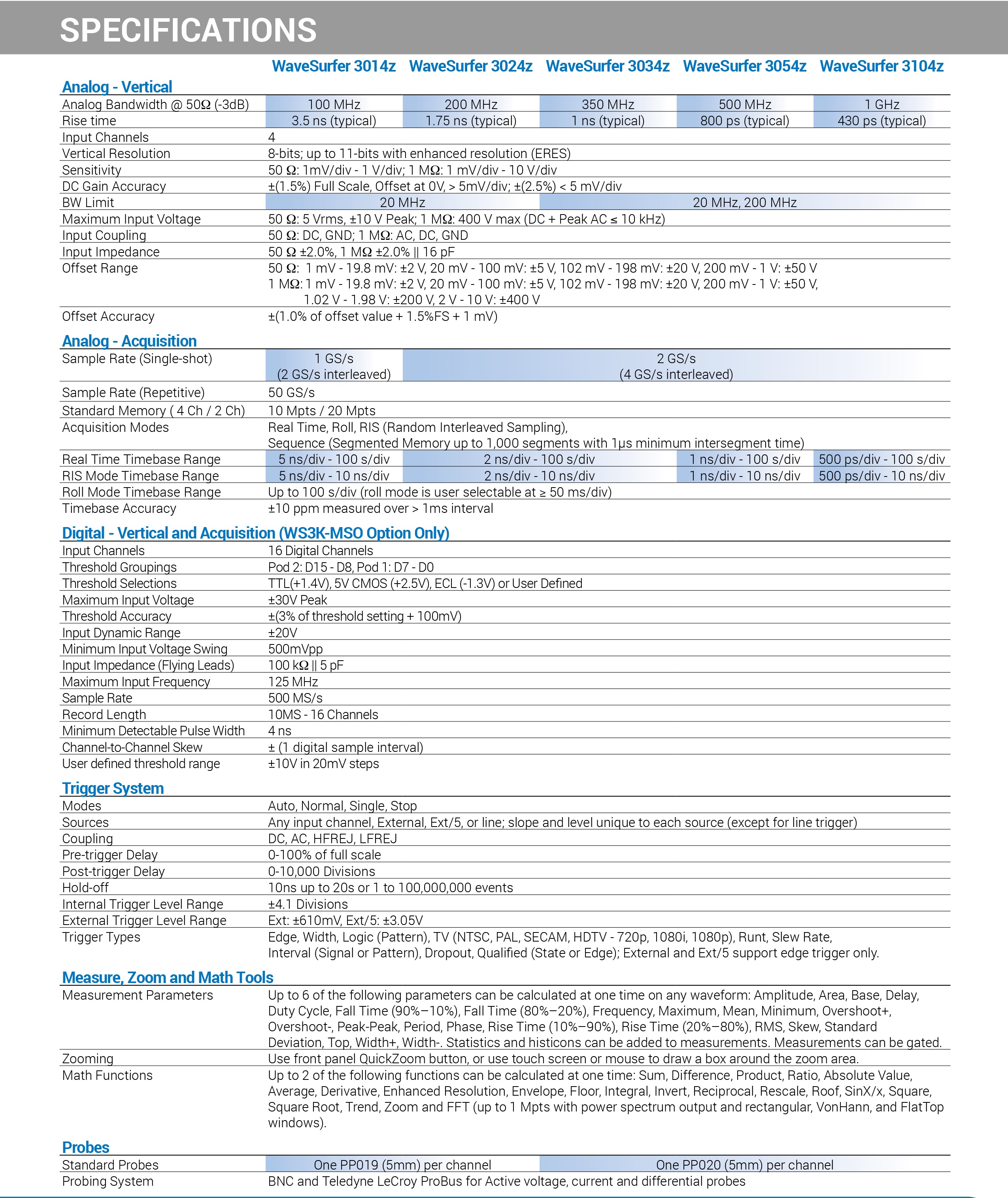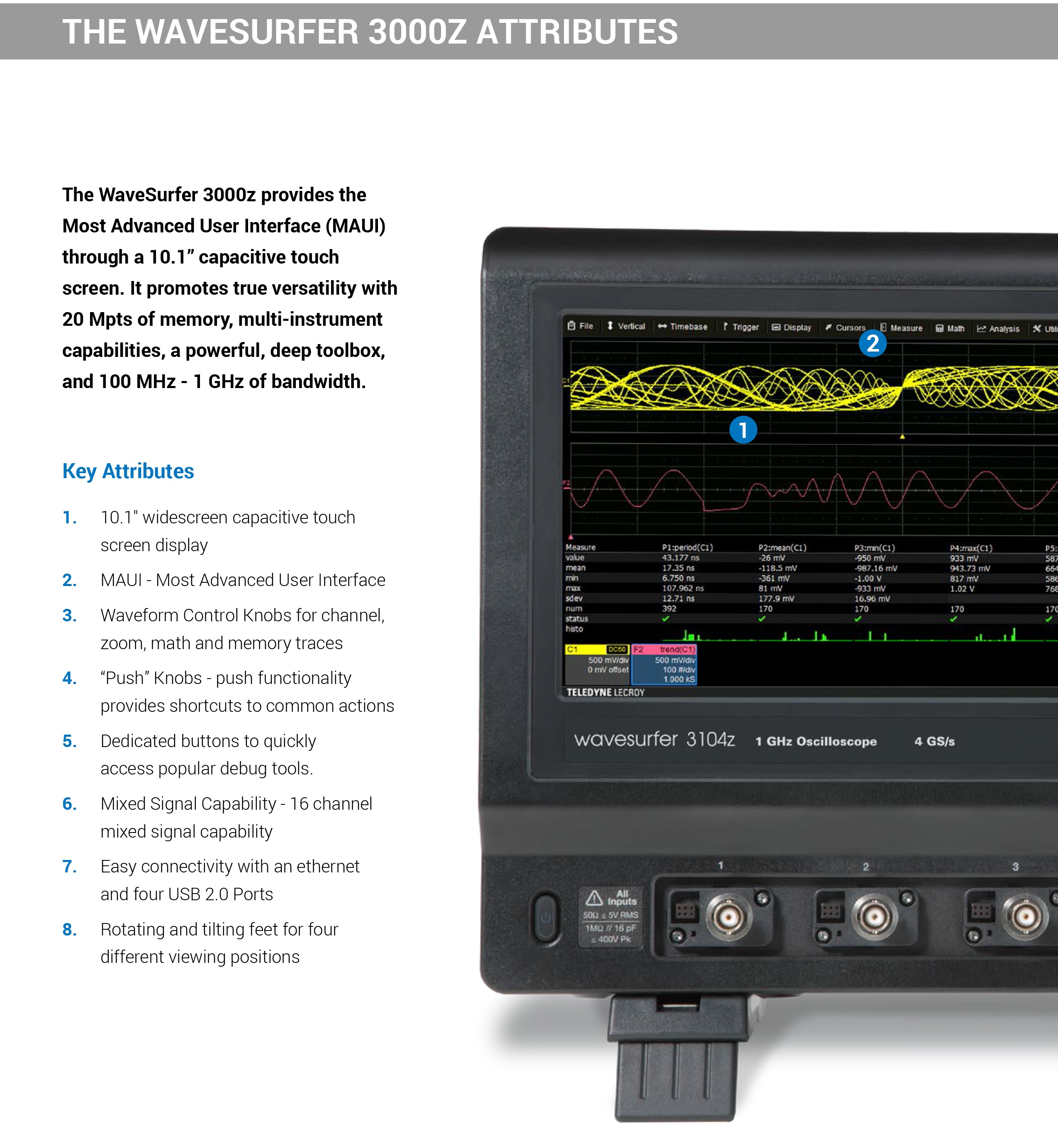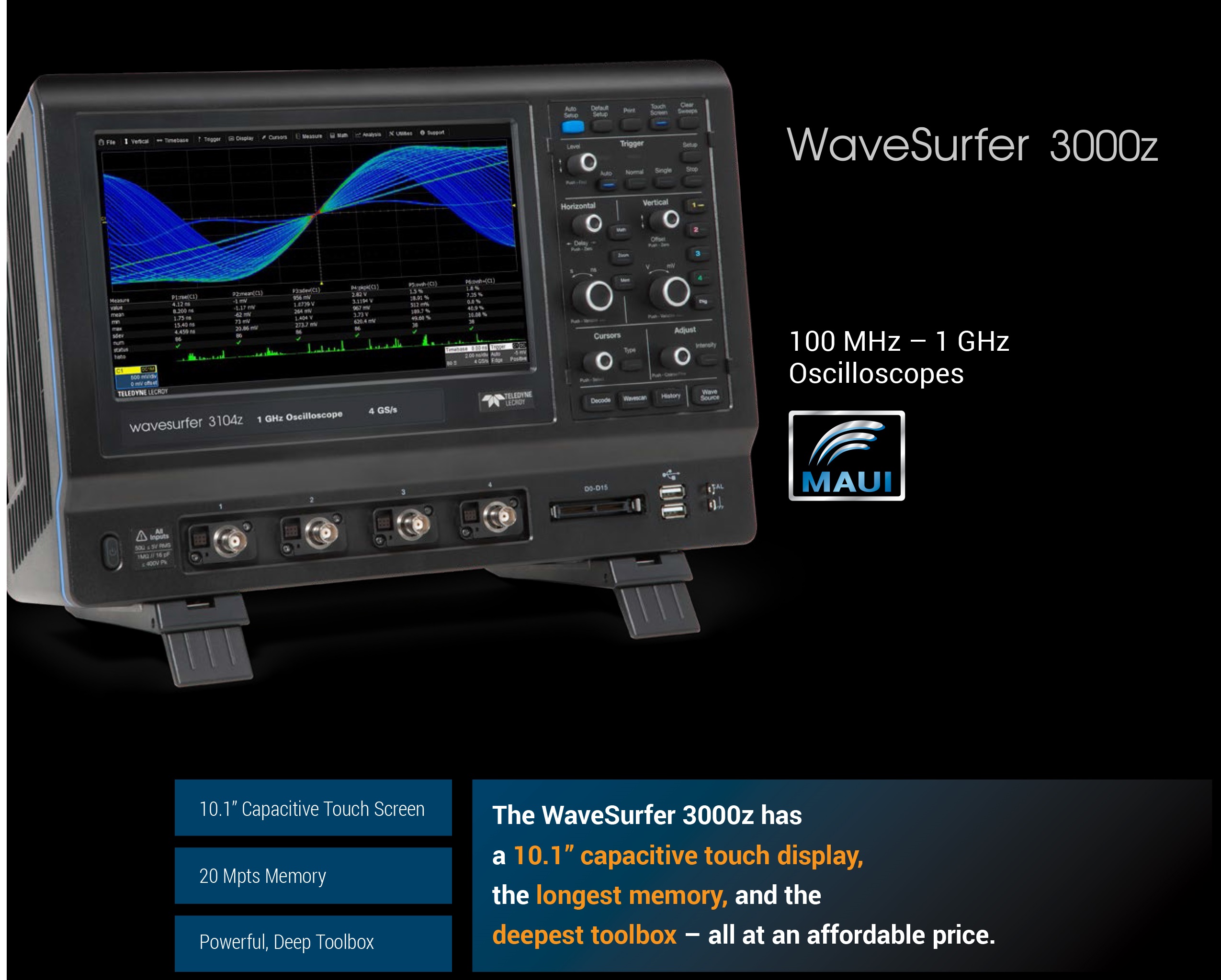 웨이브서퍼 3000z 오실로스코프, 4CH, 100MHz - 1GHz 대역폭, 8Bit 분해능, 20Mpts